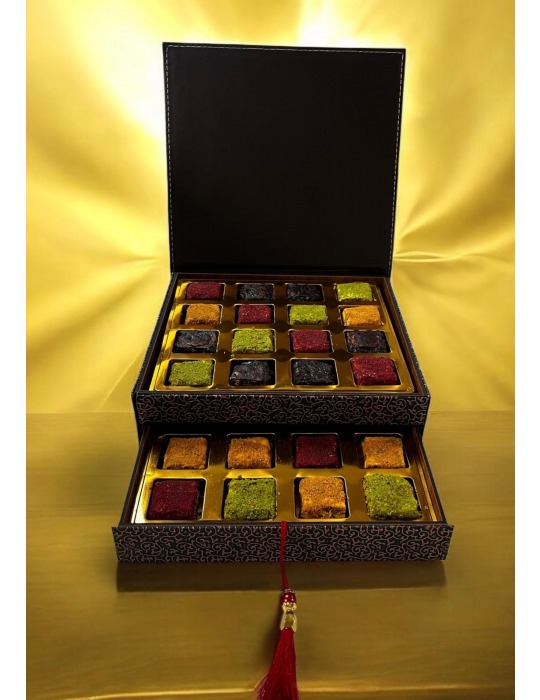İki Katlı 32'li Karışık Hacı İbrahim Efendi Baklava Lokum Çekmeceli Ahşap Kutu