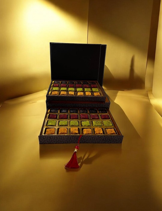 İki Katlı 48'li Karışık Hacı İbrahim Efendi Baklava Lokum Çekmeceli Ahşap Kutu